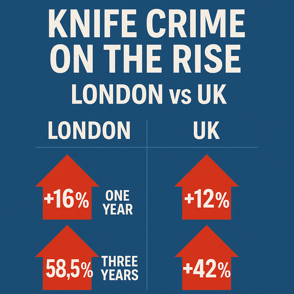 - Knife crime: London +58.5%, UK +42%