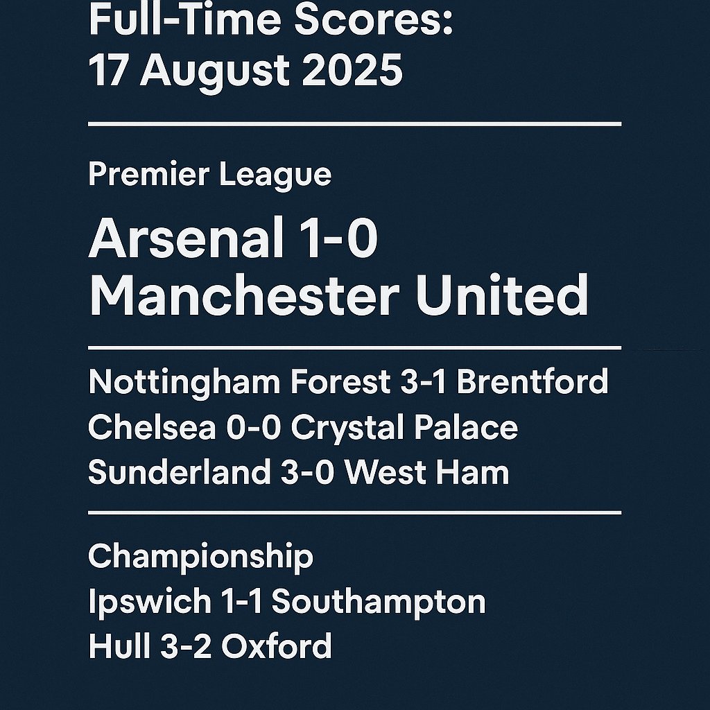 Premier League & Championship Full-Time Scores: 17 August 2025
